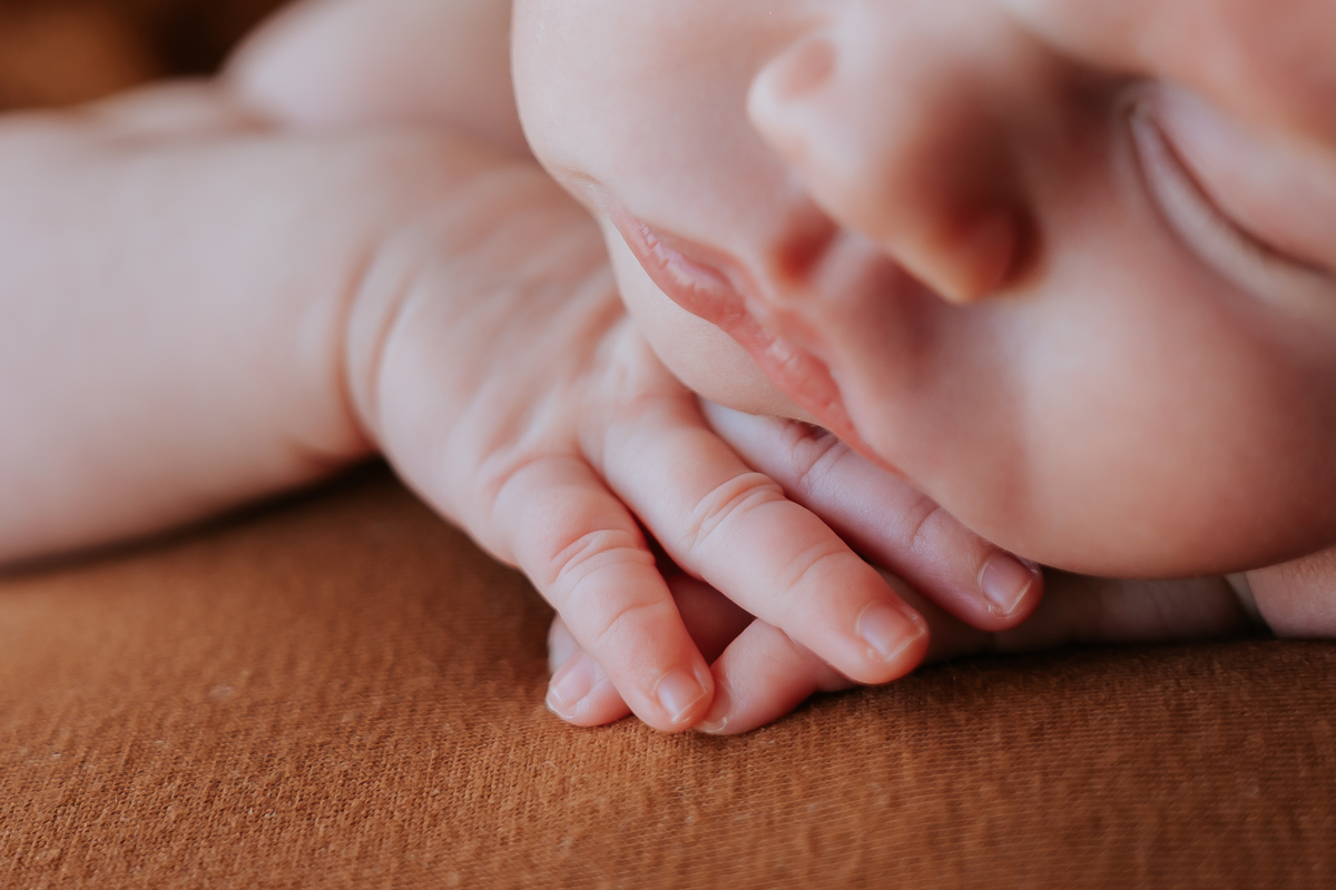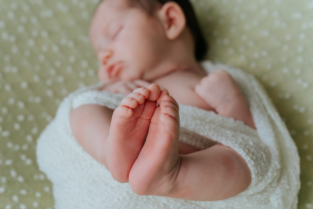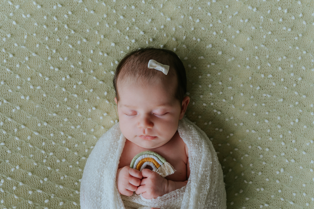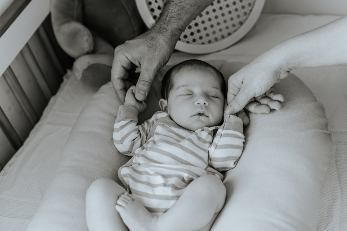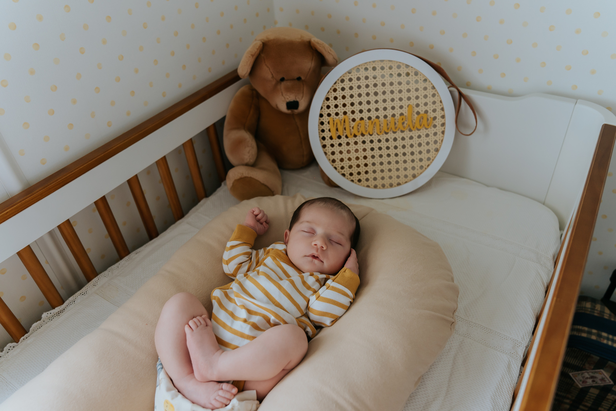 Newborn da Manuela com 20 dias de vida, feito em casa com os membros da família.